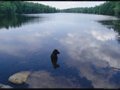 Black Lab Named Blackie Sits in a Woodland Lake Animal Photographic Poster Print by Bill Curtsinger, 12x16 Review
